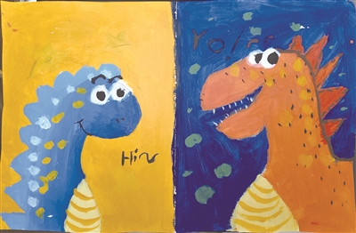 插画狮:《两只恐龙》杭州市北塘河小学三(6)班 张奕杭